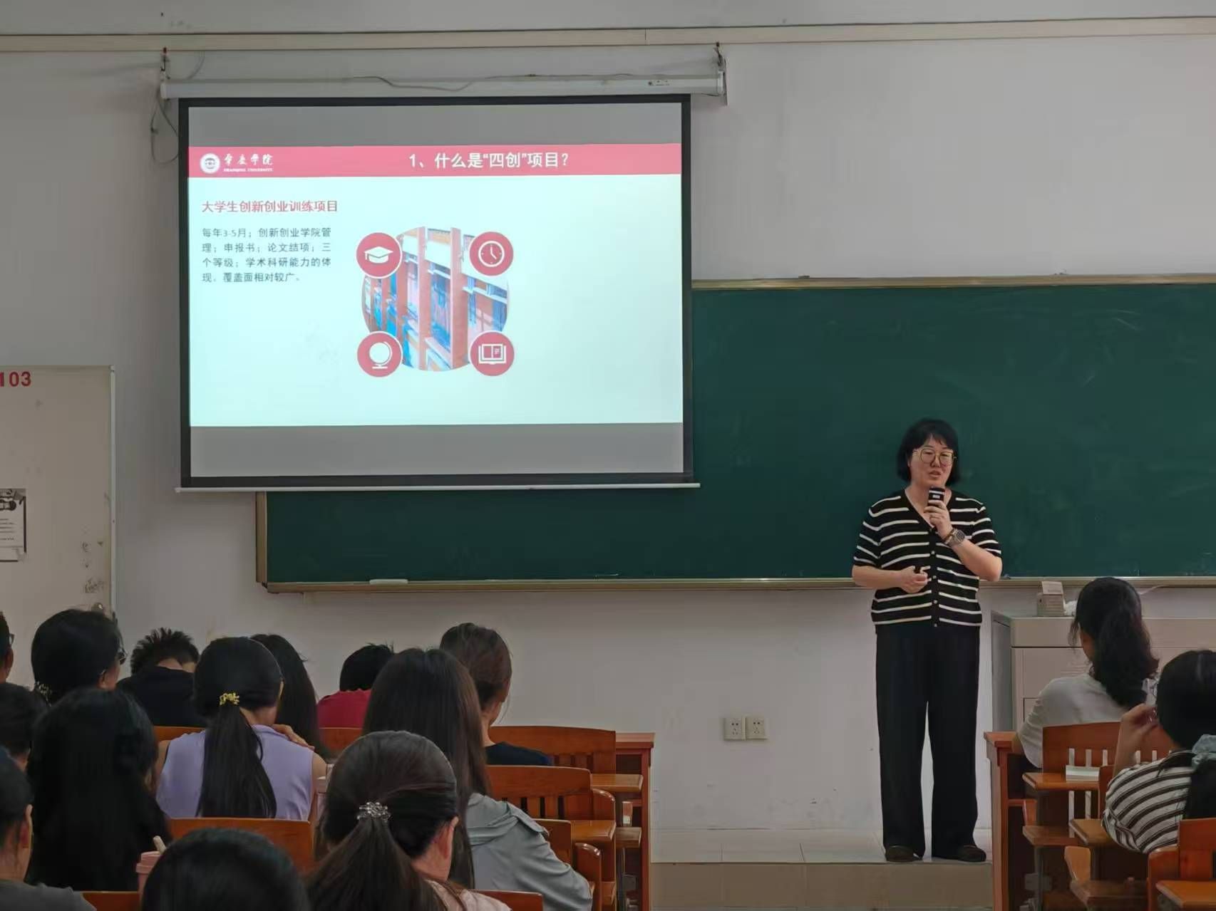 谢老师将“四创”项目分为学术科研类与创新创业类两大类,向同学们分析比较了这两大类项目的不同作用,并详细说明了各个项目的具体内容。要求同学们应当重视与老师、与团队之间的合作、重视书面化的表达、重视项目之间的延展性以及时间节点。讲座中,谢老师带领同学们探讨了实践的重要性。强调了大学生暑期三下乡活动对做好“四创”项目的益处,结合数据,分析四创申报对个人未来就业的影响,指出提高“四创”意识和“四创”能力的重要性。