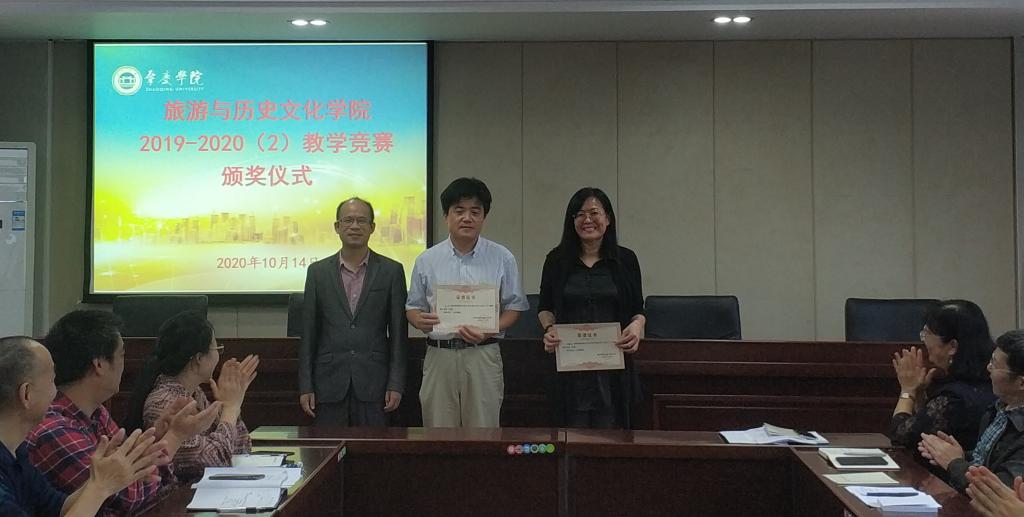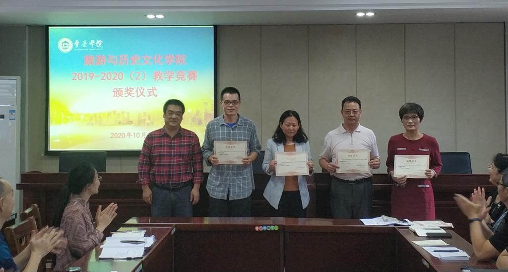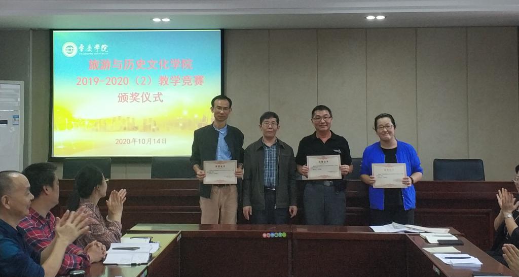 10月14日,学院召开教学工作专题会议,对2019-2020(2)教学竞赛获奖者进行表彰。李朝军院长、周军副院长、李怀顺教授分别为获奖老师颁奖。