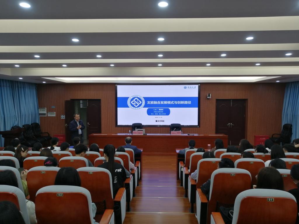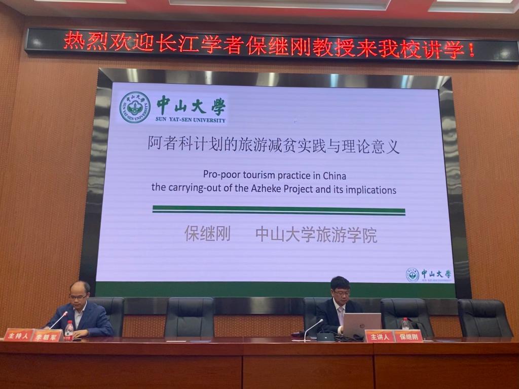 会议期间,学院邀请保继刚、殷红梅、粟路军三位教授面向全校师生开展三场专题讲座。三位教授分别作主题为旅游减贫、乡村旅游扶贫以及文旅融合的专场学术报告。