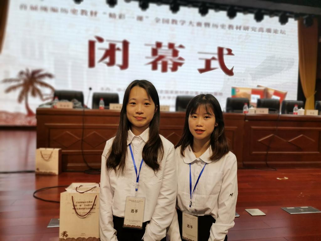11月,由李怀顺教授、王建博士带队,18级历史班卢晓婷、黄泳琪两位同学参加的首届统编历史教材“精彩一课”全国教学大赛,与全国知名师范学校同场竞技,最终,卢晓婷同学喜获三等奖,王建老师荣获优秀指导老师奖。