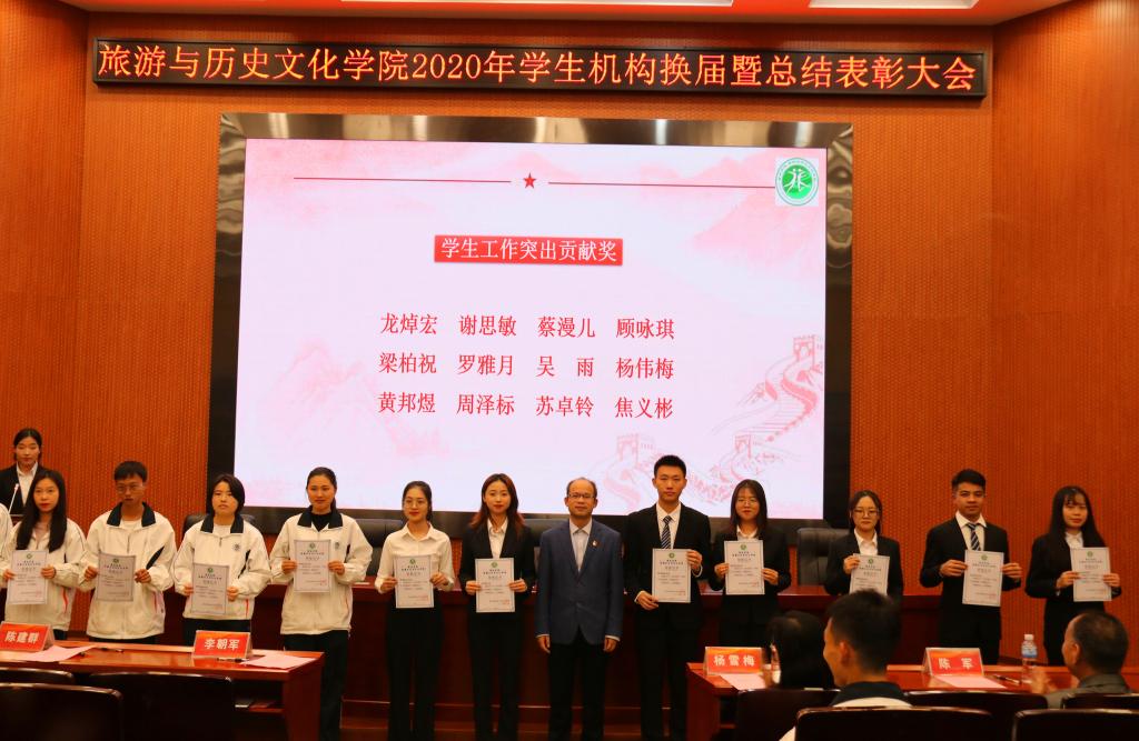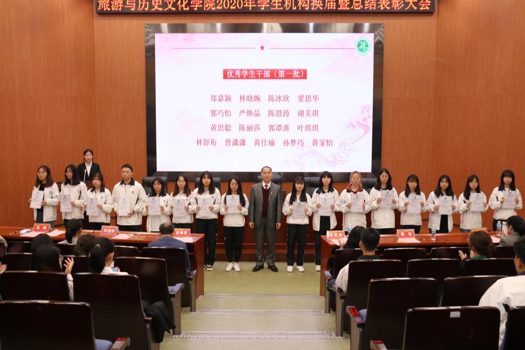 12月2日下午,旅游与历史文化学院2019-2020学年学生机构总结暨表彰大会在福慧图书馆学术报告厅隆重举行。学院李朝军院长、杨雪梅书记、陈军副书记、专职组织员陈建群老师、学院团委书记朱婷老师、团委副书记慕容诗韵老师以及辅导员车翔宇、陈瑜瑕老师,校级和各二级学院学生机构学生代表、学院全体学生干部、学院各班级代表共计120余人参加了大会。