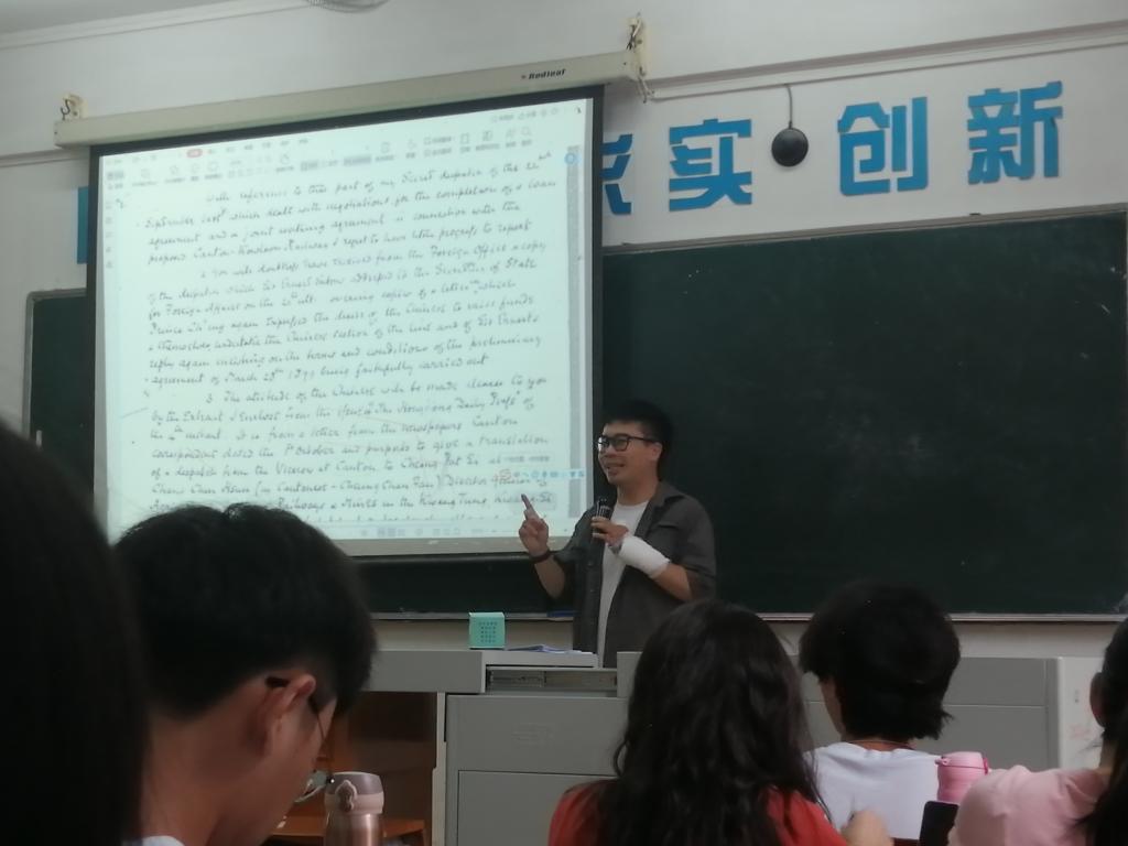 在旅游与历史文化学院,严智德任教中国近代史、中国早期现代化研究、中国经济史和专业英语等课程。作为一名青年博士,他的学术功底得到了学院学术委员会的充分肯定;作为一名青年教师,他的师德修养则得到了学院领导班子的一致认可。可以看到,严智德把国际上先进的教学思想、教学模式带到了课堂上,把自己在香港的工作经历和在北京大学的学习经验融入到教学活动中。他最热衷的事情,就是与学生分享研究中国近代史的心得,指导学生参与口述校史、大创、三下乡等社会实践活动,和学生一起共同成长。