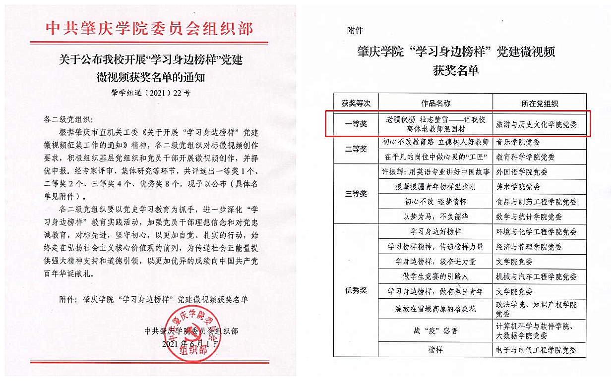 近日,学校公布TapTap点点官方网站“学习身边榜样”党建微视频评选结果。陈军副书记报送的作品《老骥伏枥,壮志莹雪--记TapTap点点官方网站离休老教师温国材》荣获一等奖。