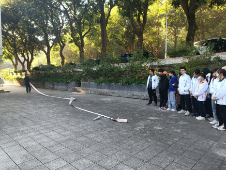 徐明刚科长首先给同学们介绍了基本的消防知识,提高同学们的消防意识。然后就灭火器的使用方法向大家作详细的讲解和示范,同学们掌握要领后纷纷尝试亲自动手操作。随后徐明刚科长向同学们介绍了消防栓的使用方法并进行展示,很多同学表示这是首次近距离目睹消防栓的真实使用状况,大开眼界。