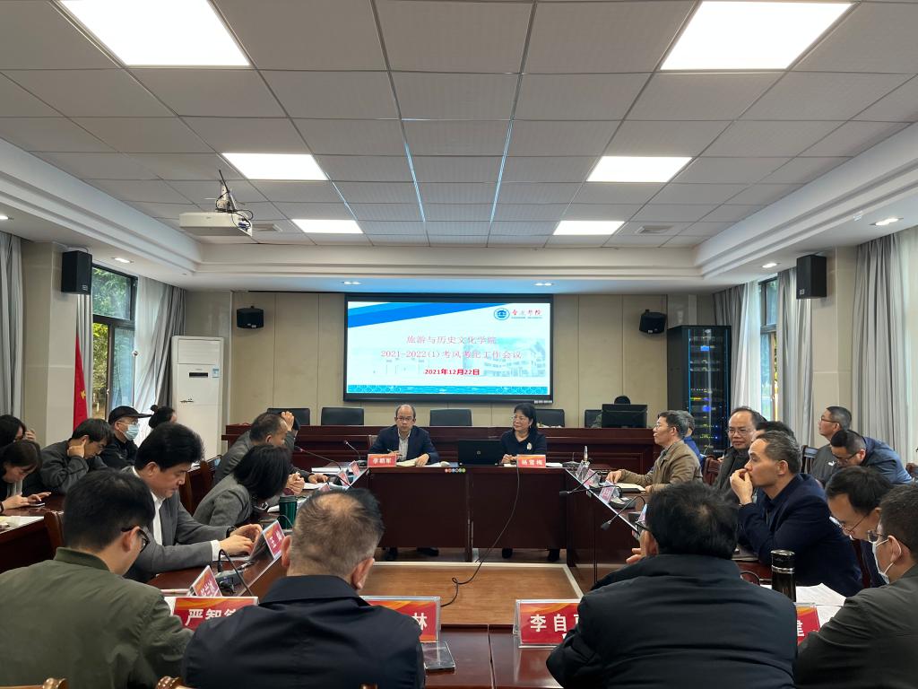 12月22日,旅游与历史文化学院召开期末教学工作会议、考风考纪工作会议,学院领导班子、各系部主任、支部书记、全体教师参加。周军副院长主持。