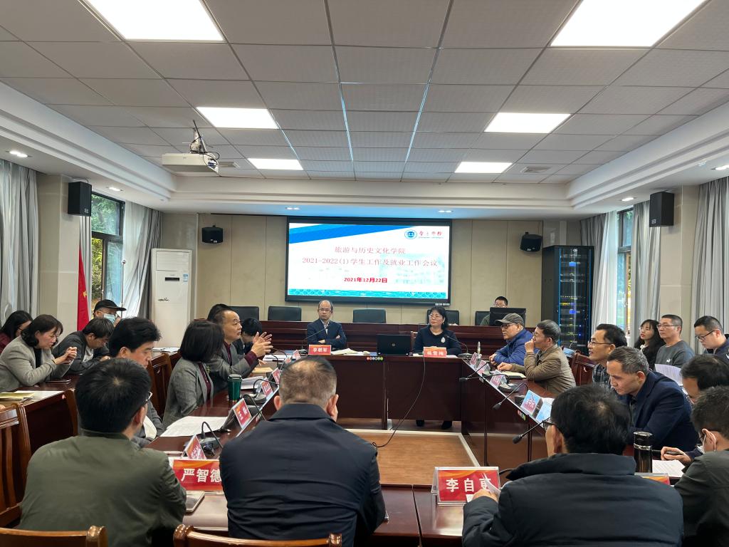 12月22日,旅游与历史文化学院召开学生工作与就业工作会议,学院领导班子、各系部主任、支部书记、全体教师参加。陈军副书记主持。