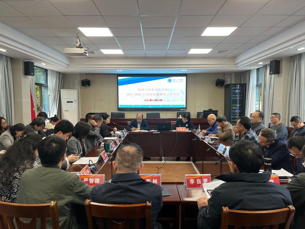 12月22日,旅游与历史文化学院召开科研工作与实验实践教学工作会议,学院领导班子、各系部主任、支部书记、全体教师参加。郭栩东副院长主持。