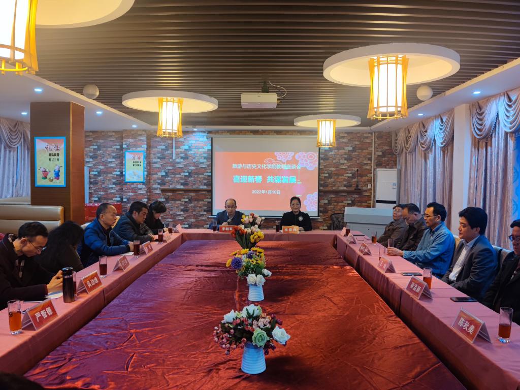 1月10日,旅游与历史文化学院召开2021年教师新春座谈会。各民主党派代表、台湾教师、香港教师欢聚一堂,喜迎新春,共谋发展,表达把学院建设得更加美好的决心。