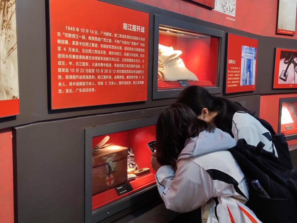 师生党员行走在阳春的红色展馆,认真感受艰苦卓绝的革命岁月,在讲解员的带领下回忆党领导阳春人民,在广东南部和粤中革命史上,谱下的可歌可泣的壮丽篇章。透过一幅幅展板、旧照片、原始资料,使同学们对历史的温情和敬意便油然而生。