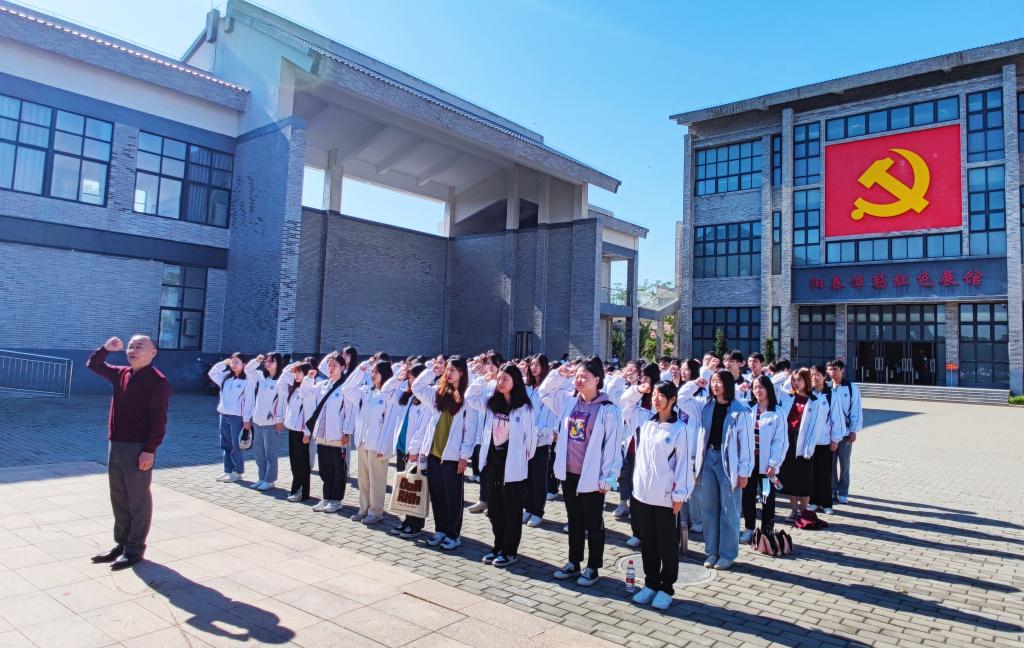 为进一步推进党史学习教育,提高师生的党史学习热情,11月28日,由陈军副书记、肖光明教授、实践教学部符兰冰主任、历史系严智德主任、刘晓聪博士、蔡群博士、教务员胡永霞、实验员徐莉莉、办公室陈喜钠老师、辅导员车翔宇、陈瑜瑕等老师带队带队,旅院师生们先后前往阳春潭簕村红色展馆和云浮邓发故居开展主题党日活动。