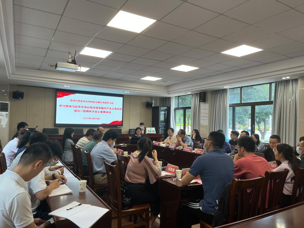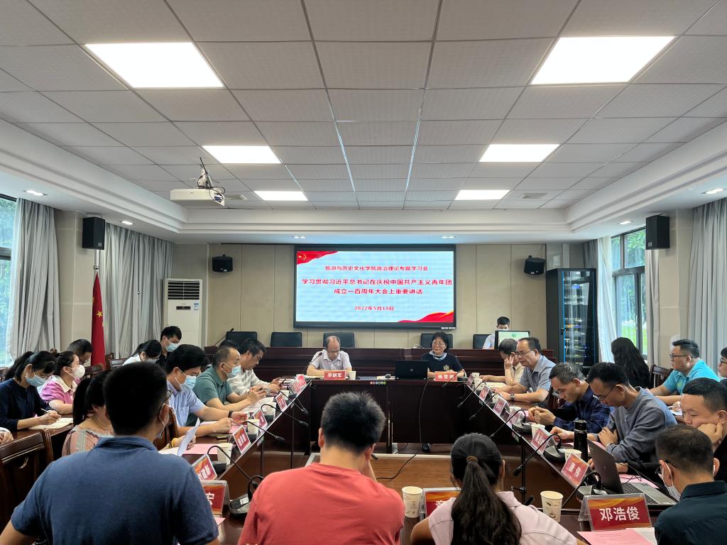 5月18日,旅游学院党委组织全体教职工开展政治理论学习,深入学习习近平总书记在庆祝中国共产主义青年团成立100周年大会上的重要讲话精神。李朝军院长主持,郭栩东副院长、周军副院长、陈军副书记以及党支部书记、系部主任,全体教职员工参加。
