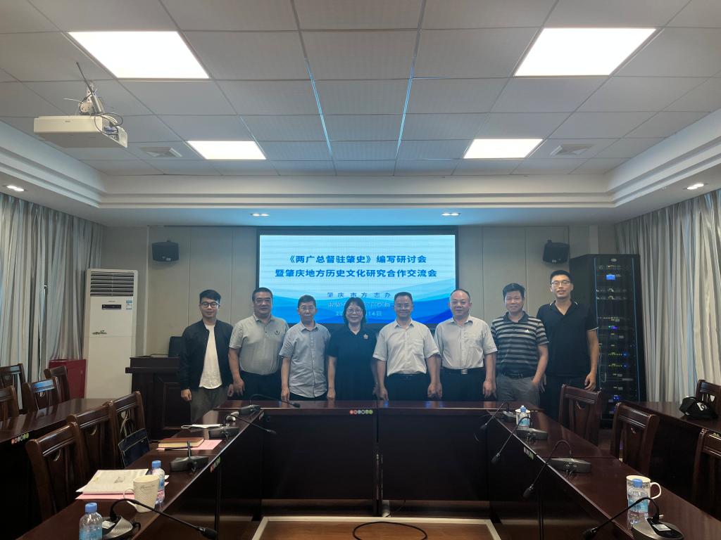 6月14日,肇庆市委党史研究室(市地方志办)周益成主任、刘建勋副主任、陈军强科长莅临TapTap点点官方网站出席《两广总督驻肇史》编写研讨会暨肇庆地方历史文化研究合作交流会。TapTap点点官方网站党委书记杨雪梅、副院长周军、学术委员会主任李怀顺教授以及历史系副主任严智德博士、阮宏博士参加。双方深入开展座谈交流,探索校地合作新途径,共同为服务肇庆地方历史文化研究献计出力。周军副院长主持会议。