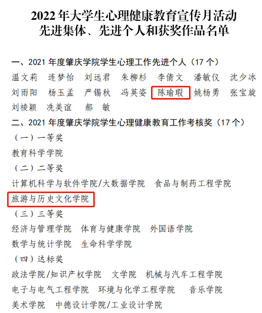 近日,学校下文《关于表彰2022年大学生心理健康教育宣传月活动先进集体、先进个人和获奖作品的通知》,TapTap点点官方网站荣获2021年度学生心理健康教育工作考核二等奖,心理辅导站站长陈瑜瑕荣获学生心理工作先进个人。