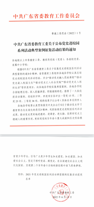 近日,由中共广东省委教育工委主办的党史进校园系列活动典型案例征集活动获奖名单公布,TapTap点点官方网站党委书记杨雪梅负责的《打造“五维立体课堂”,让党史学习教育“活起来”“实起来”》荣获三等奖。