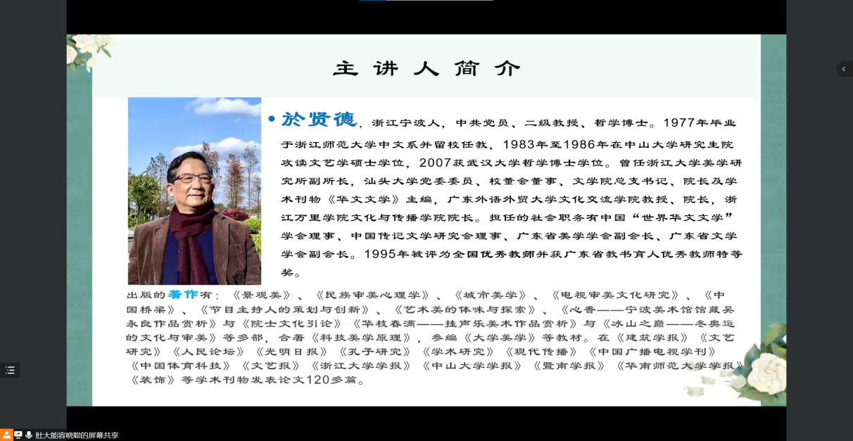 於贤德教授,武汉大学哲学博士,广东外语外贸大学文化交流学院教授、院长,中国“世界华文文学”学会理事、中国传记文学研究会理事,广东省美学学会副会长,广东省文学学会副会长。出版专著十余部,发表学术论文一百二十多篇。