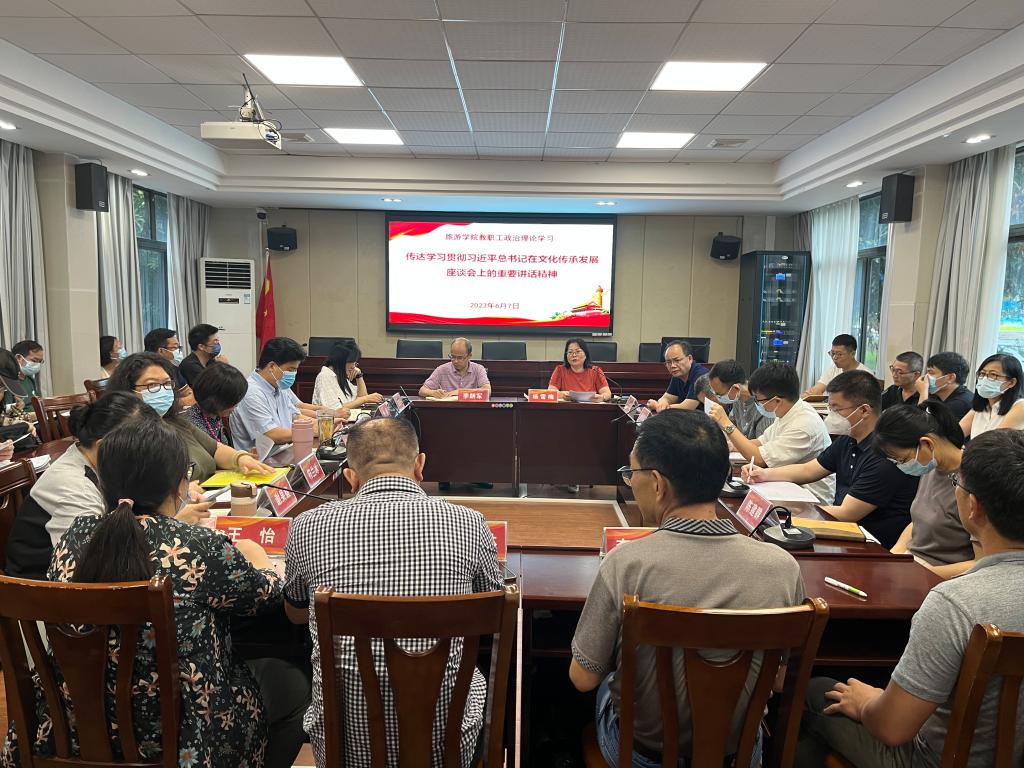 6月7日,TapTap点点官方网站组织开展政治理论专题学习,传达学习习近平总书记在文化传承发展座谈会上的重要讲话精神。党委书记杨雪梅主持,李朝军院长、郭栩东副院长、周军副院长以及党支部书记、系部主任以及全体教师参加。