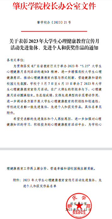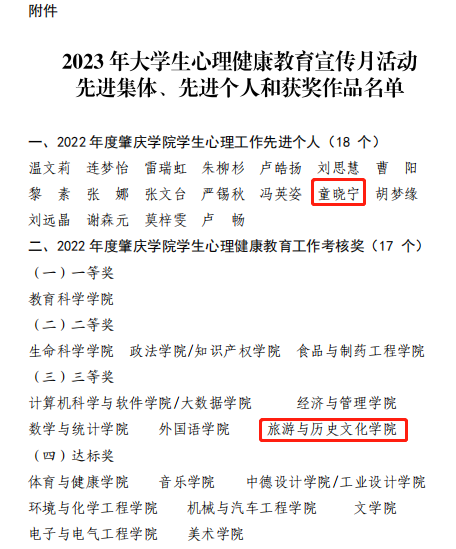 近日,学校下文《关于表彰2023年大学生心理健康教育宣传月活动先进集体、先进个人和获奖作品的通知》,TapTap点点官方网站荣获2022年度学生心理健康教育工作考核三等奖,地理系主任童晓宁博士荣获学生心理工作先进个人。