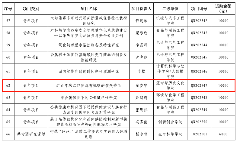 3、童晓宁:《近百年珠江口陆源有机碳的演变特征》(青年项目)