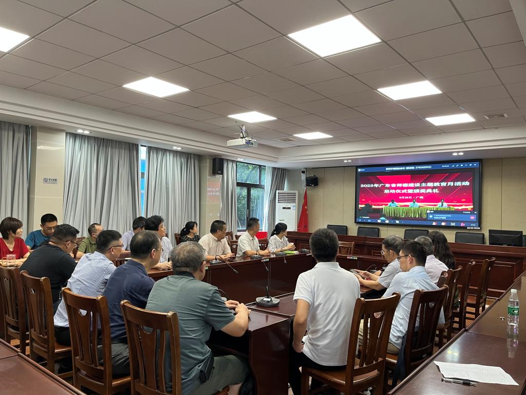 8月28日下午,2023年师德建设主题教育月活动启动仪式暨颁奖典礼在广州举行。省委教育工委委员,省教育厅党组成员、副厅长朱建华出席活动并讲话。李朝军院长、杨雪梅书记参加学校分会场活动,郭栩东副院长、周军副院长、系部主任、教师代表在学院会议室观看视频转播。