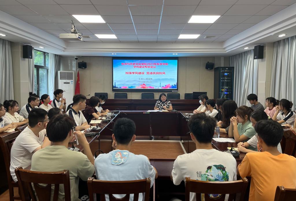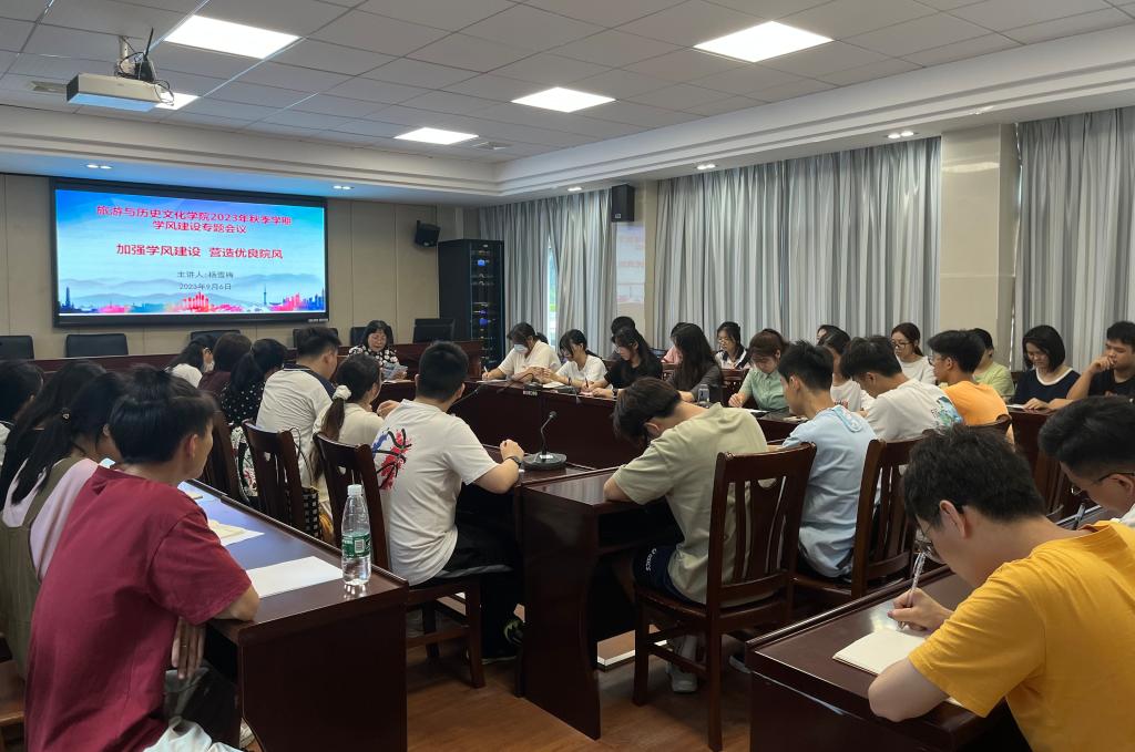 9月6日,杨雪梅书记主持召开2023年秋季学期学风建设专题会议,各班班长参加。她强调,一是端正态度,明确目标。每位同学都要高度重视评建工作,学生党员、班级干部要加强对评建班级工作的管理,把迎评促建列为重要任务,要把评建工作时刻抓在手上,放在心中;二是严格纪律,优化管理。切实调动各班级学生参与迎评促建工作的积极性与创造性;三是明确责任,落实任务。切实增强每个同学的责任感和紧迫感,为建设优良学风班集体为目标共同努力。