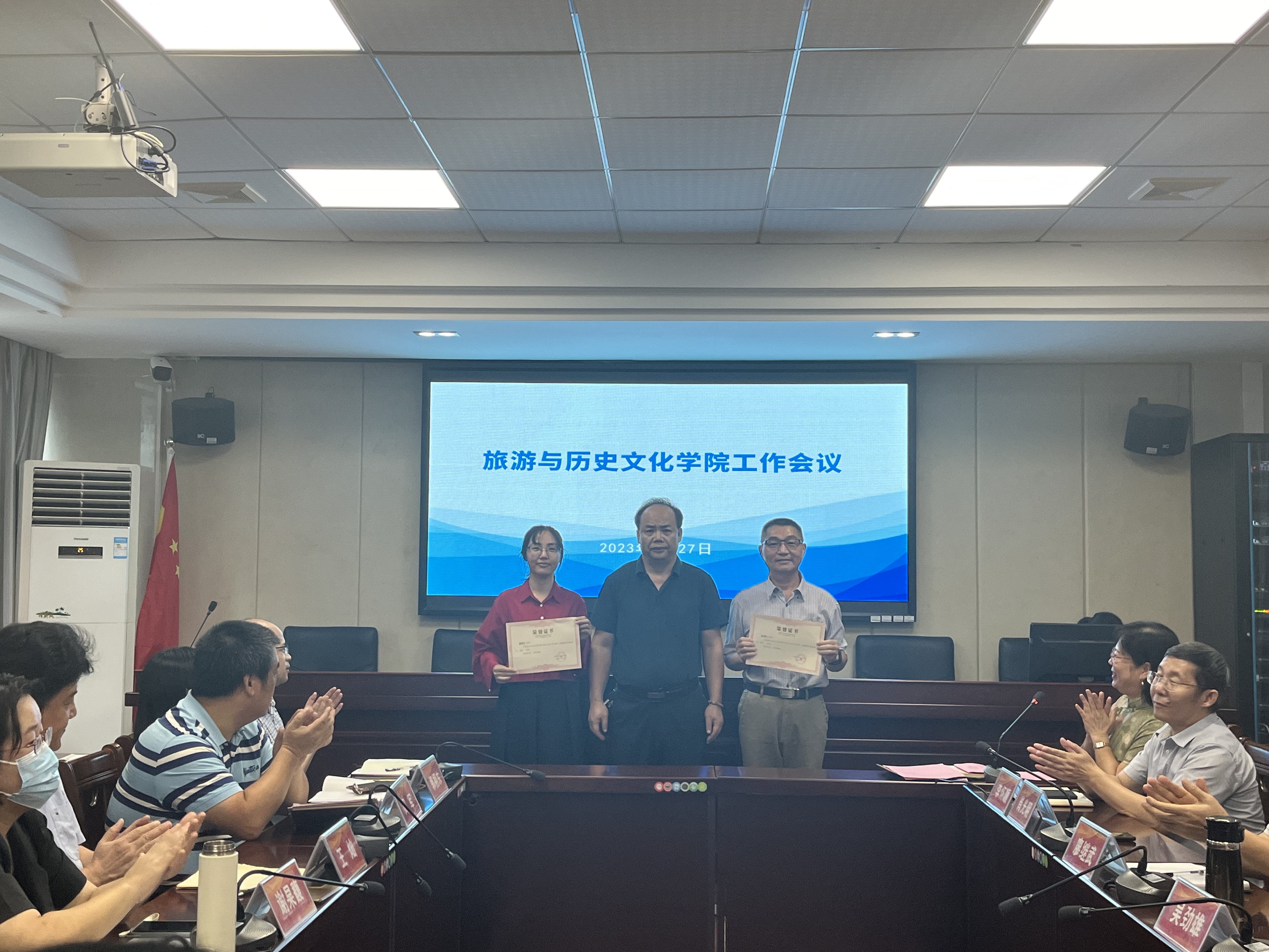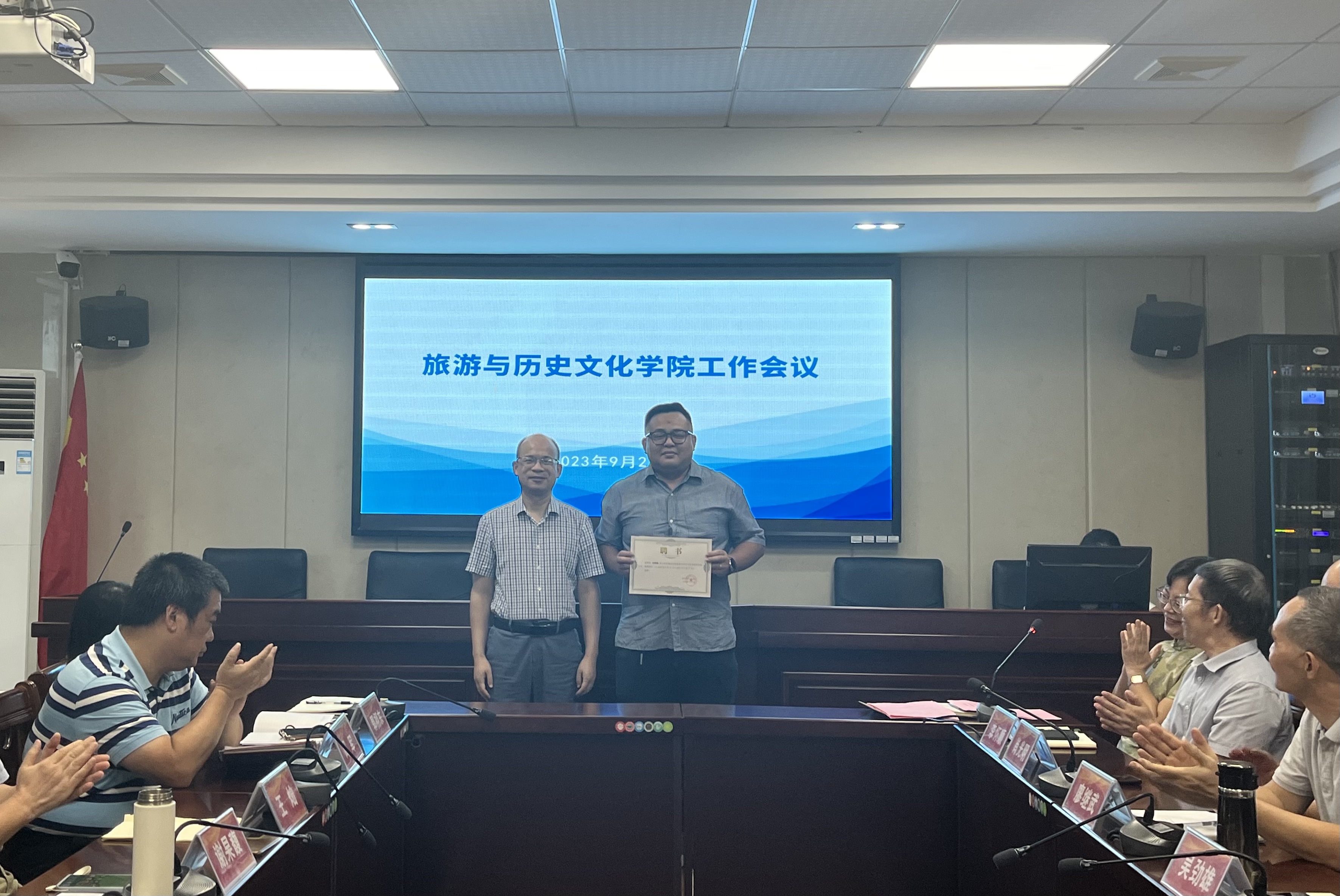 会议的第三个环节,聘任刘晓聪博士为历史系主任,李朝军院长为刘晓聪博士颁发聘书。