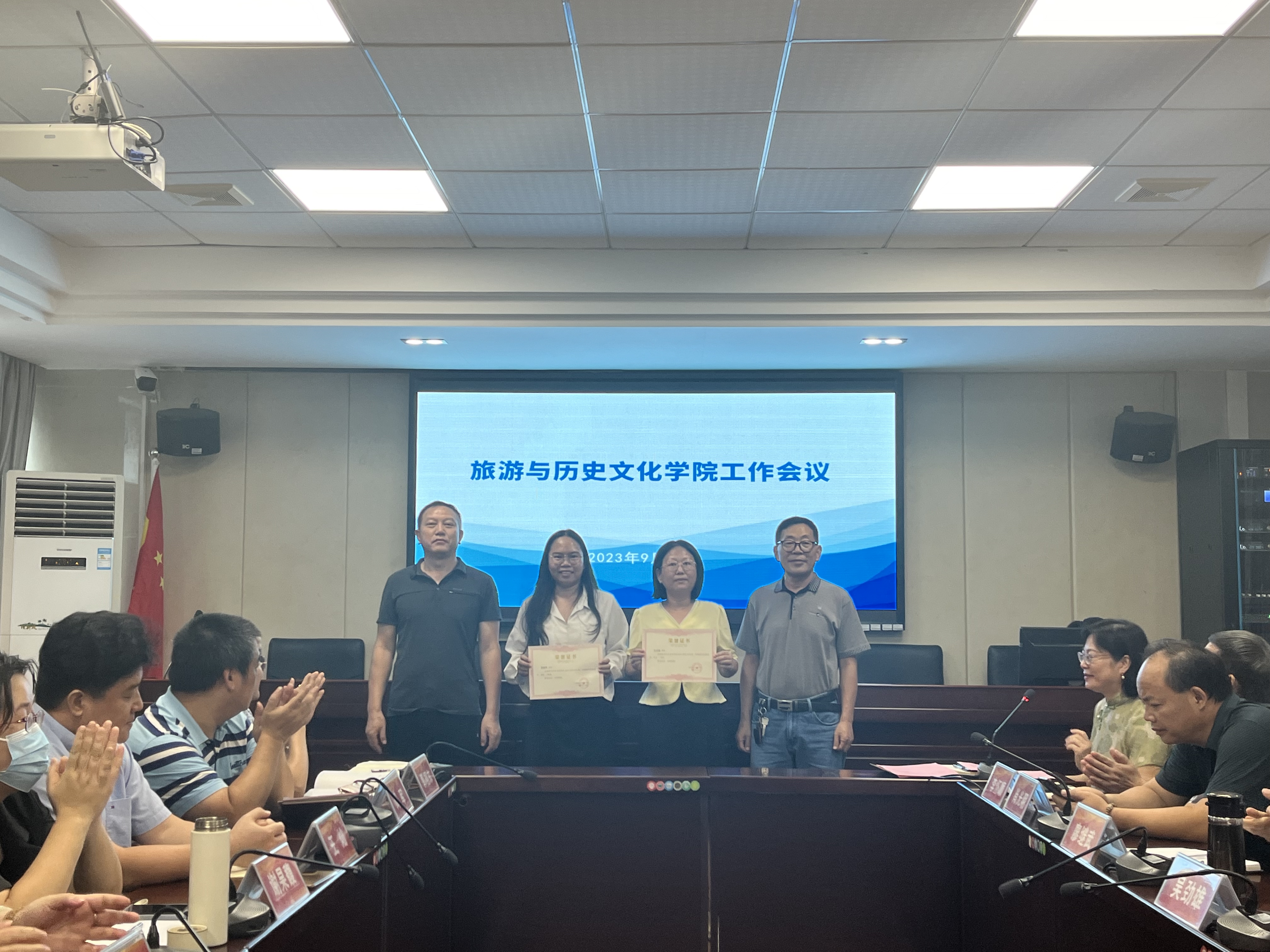 会议的第二环节,是为2022-2023第二学期的学院教学竞赛奖获奖老师们颁发荣誉证书。2022-2023学年第二学期,学院以提升应用型人才培养质量为根本,突出教学工作中心地位,人才培养质量稳步提高,全院教工积极投身人才培养、教学改革和教育研究,涌现一批先进典型,经学院教学委员会评审,党政联席会议研究,对教学竞赛和学生评教取得优异成绩的教师予以表彰。具体名单如下: