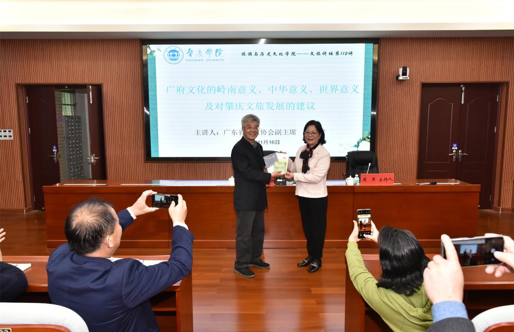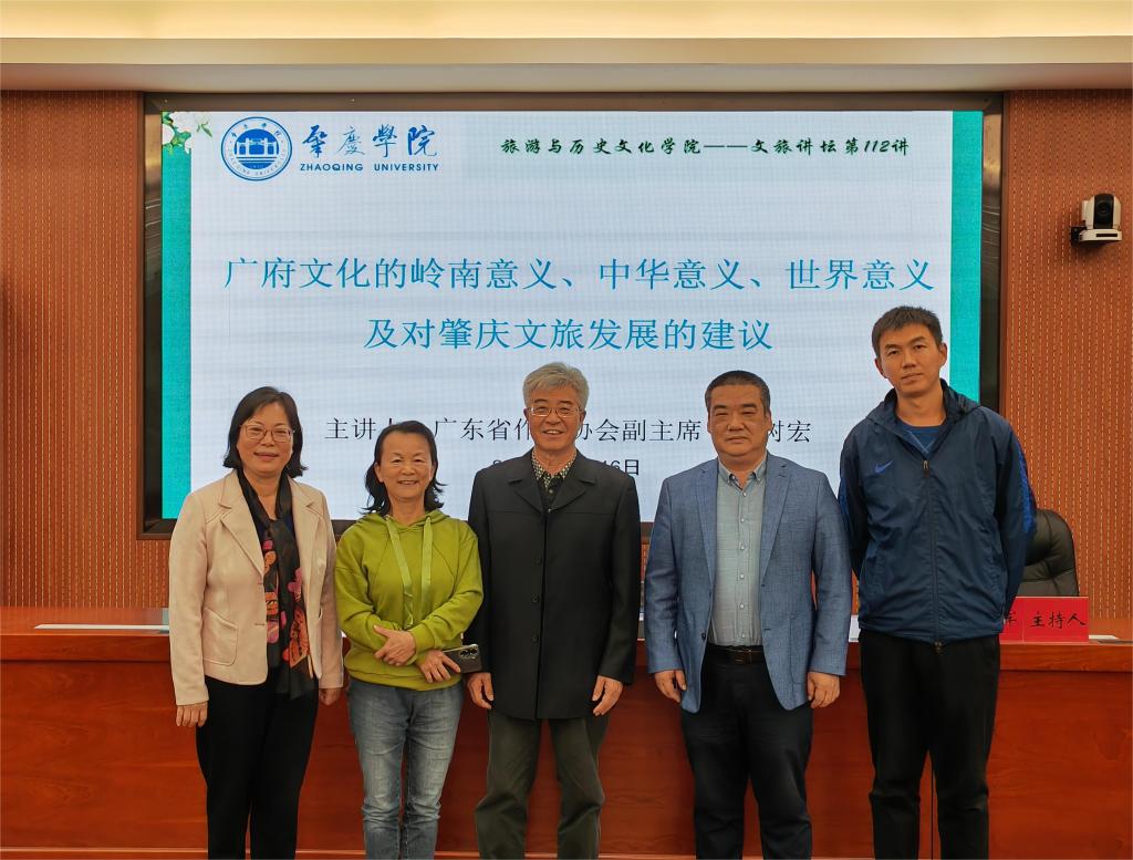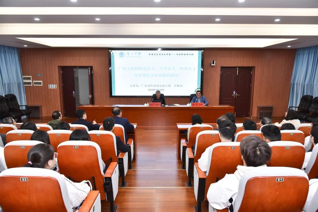 11月16日,中国宋庆龄基金会理事、广东省政府文史馆馆员、广东省作家协会副主席、原中山市政协主席丘树宏做客TapTap点点官方网站TapTap点点官方网站,主讲“广府文化的肇庆意义、岭南意义、中华意义、世界意义及对肇庆市文旅发展的建议”专题讲座。旅游与历史文化学院党委书记杨雪梅、李怀顺教授、肖光明教授、杜云南博士、谢杲馥博士以及120多名师生代表参加,TapTap点点官方网站副院长周军主持。