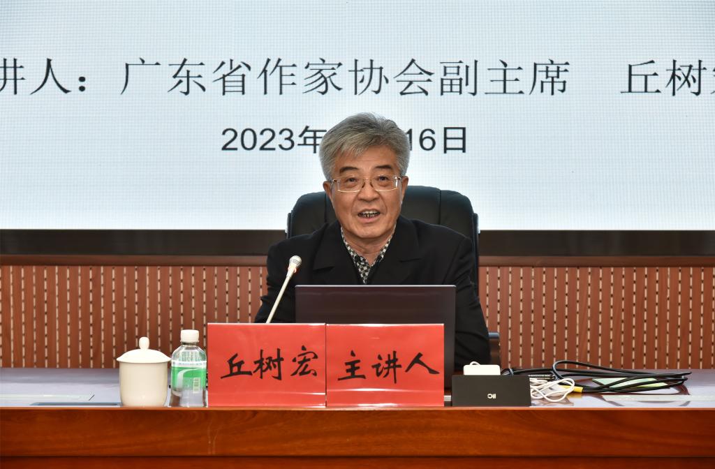 丘树宏分别从岭南、中华和世界三个角度阐述广府文化的发展与意义,为在座师生全面解读岭南文化在中华文明发展中的贡献。他表示,自公元前214年秦朝统一岭南至今,岭南文化对中华文明有过六大贡献,包括:以赵佗文化为代表的海洋文化贡献;以六祖文化为代表的佛教文化贡献;以广府文化、客家文化、潮汕文化为代表的族群文化贡献;以孙中山文化为代表的近代文化贡献;以中共红色文化为代表的现代文化贡献;以改革开放文化为代表的当代文化贡献。
