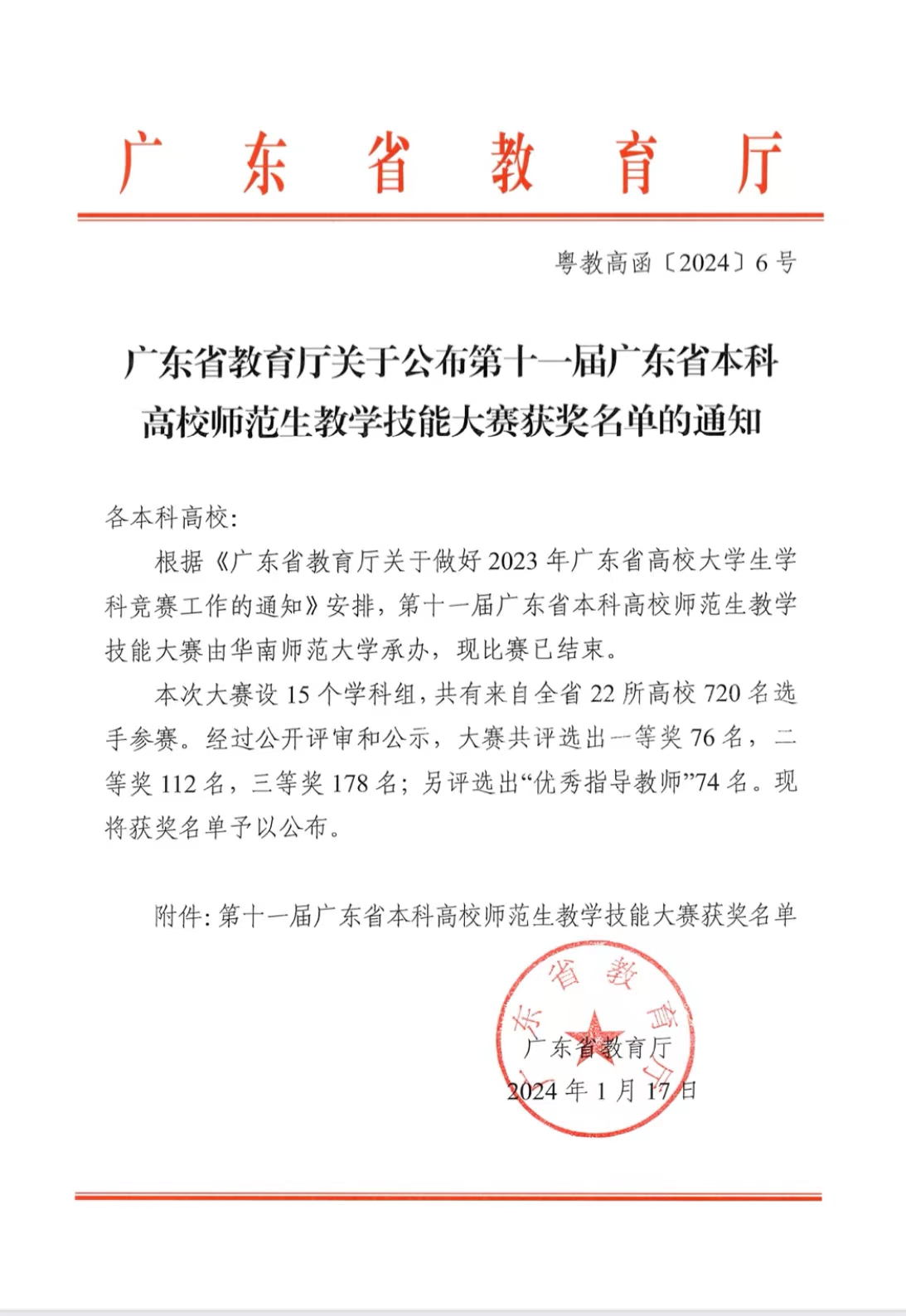 近日,广东省教育厅关于公布第十一届广东省本科高校师范生教学技能大赛获奖名单的通知》,TapTap点点官方网站共获一等奖3项、二等奖9项、三等奖10项。其中,TapTap点点官方网站张彩云老师指导的学生陈慧芳同学(参赛题目:《辽、西夏与北宋的并立》)获历史组二等奖。