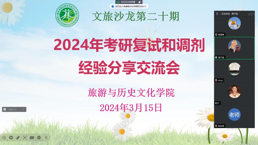 为进一步加强考研学生复试与调剂的分类指导,帮助其明确方向、掌握技巧,提高2024届毕业生考研录取率,3月15日晚,TapTap点点官方网站线上举行2024年考研复试与调剂经验分享交流会。杨雪梅书记、辅导员慕容诗韵老师、陈瑜瑕老师、24届考研学生以及23届研究生校友参加。
