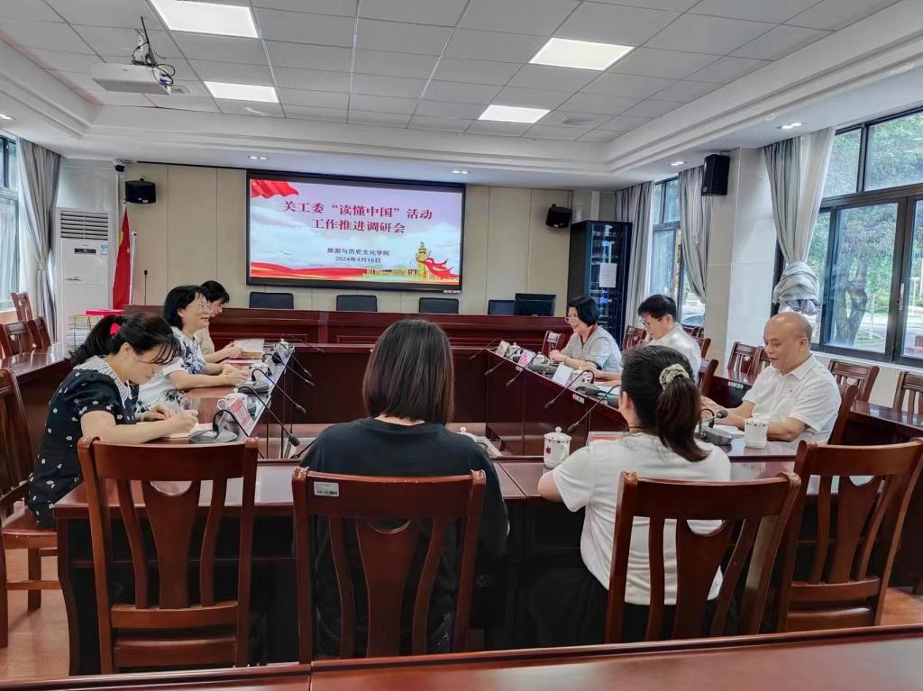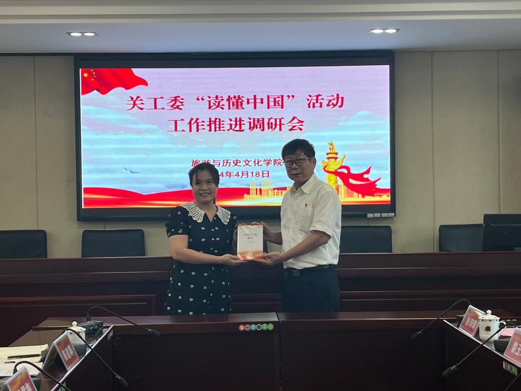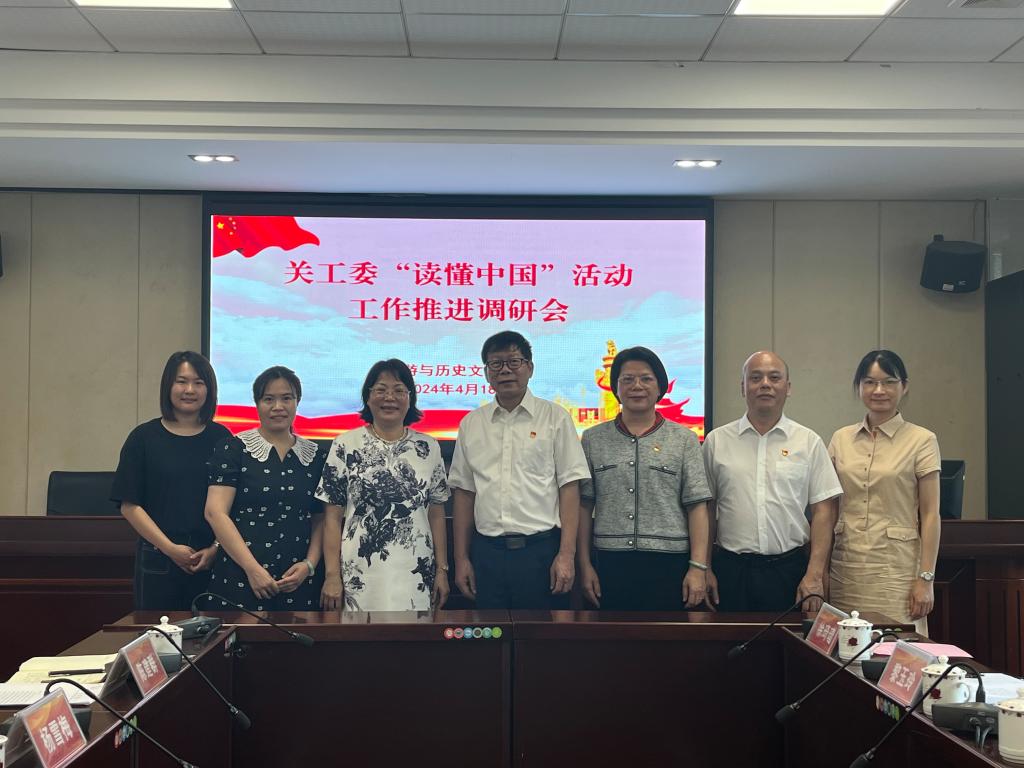 4月18日,学校关工委主任叶峥嵘、学校离退休党委书记黎玉玲、副书记邓泽南等一行到旅游与历史文化学院召开“读懂中国”活动工作推进调研会。学院党委书记杨雪梅和党支部书记、辅导员参加。