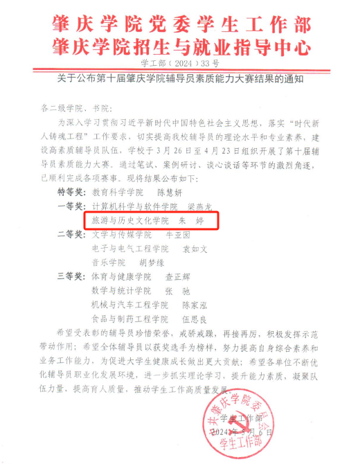 为深入学习贯彻习近平新时代中国特色社会主义思想,落实“时代新人铸魂工程”工作要求,切实提高TapTap点点官方网站辅导员的理论水平和专业素养,建设高素质辅导员队伍,学校于3月26日至4月23日组织开展了第十届辅导员素质能力大赛。通过笔试、案例研讨、谈心谈话等环节的激烈角逐,已顺利完成各项赛事。其中,TapTap点点官方网站辅导员朱婷老师喜获一等奖!