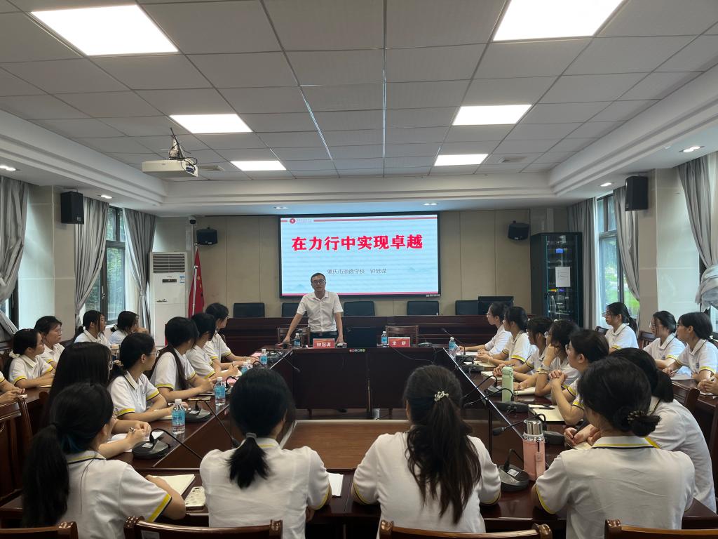 开班仪式后,钟冠谋书记主讲专题《在力行中实现卓越》。他结合具体的教学实例,深入阐释了站稳讲台,做好班主任的技巧与方法,勉励学生们脚踏实地、刻苦学习。
