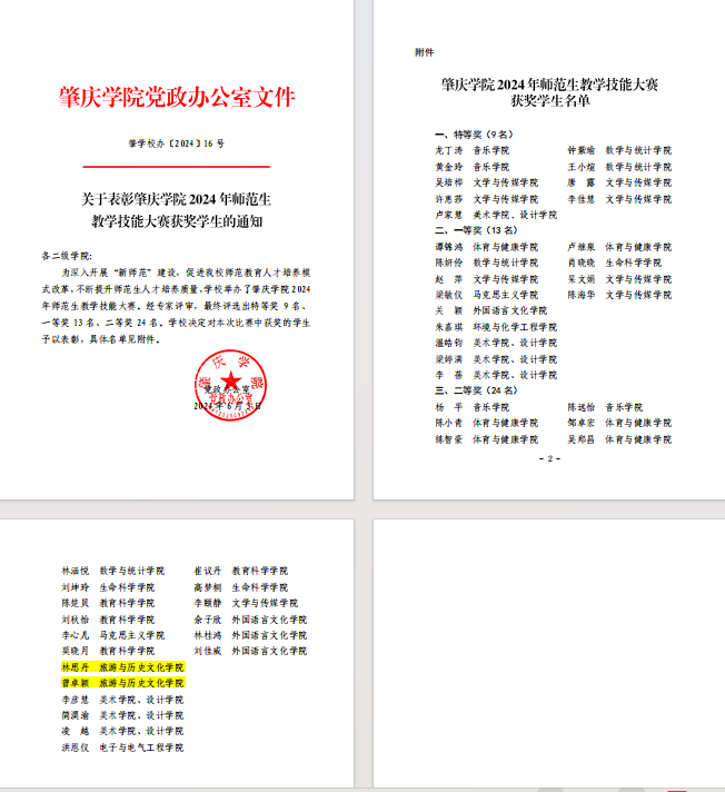 为深入开展“新师范”建设,促进TapTap点点官方网站师范教育人才培养模式改革,不断提升师范生人才培养质量,学校举办了肇庆学院 2024年师范生教学技能大赛。经专家评审,最终评选出特等奖 9 名、一等奖 13 名、二等奖 24 名。其中,TapTap点点官方网站学生林思丹、曾卓颖获二等奖。