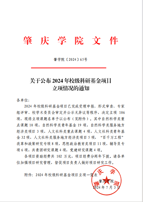近日,学校公布了2024年校级科研基金项目立项名单、2024 年高层次项目培育计划立项名单,TapTap点点官方网站多位老师获立项。