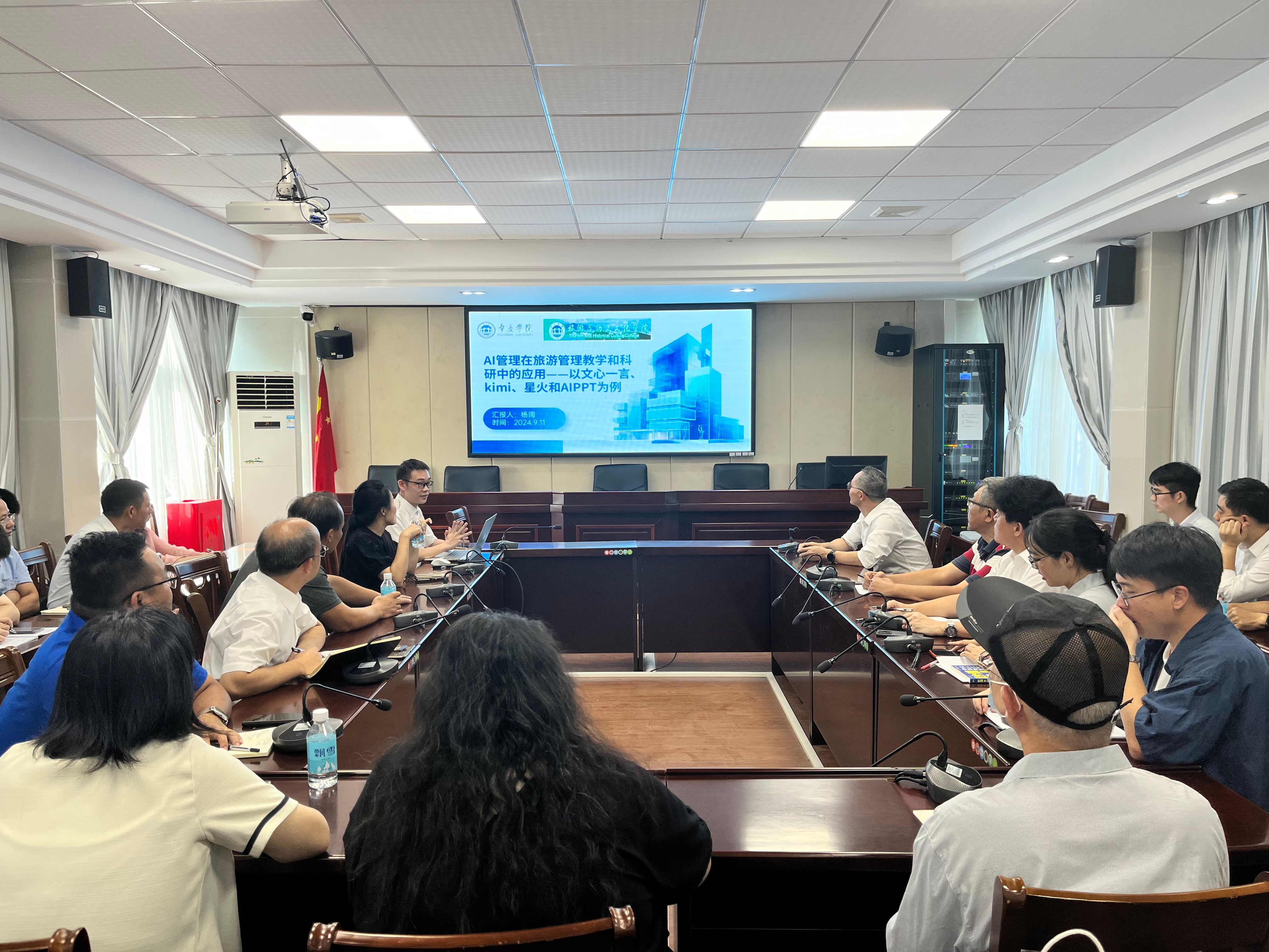 会上,旅游系杨阔博士、历史系蔡群博士、地理科学系郑壮鹏博士结合专业特点,分别分享了AI技术在课程设计和教学实践中的多方面应用。随后,与会教师围绕数字化教育教学改革和数字化赋能课堂教学进行了热烈讨论,都表示愿意在教学实践中尝试新技术,努力提升课堂教学质量。