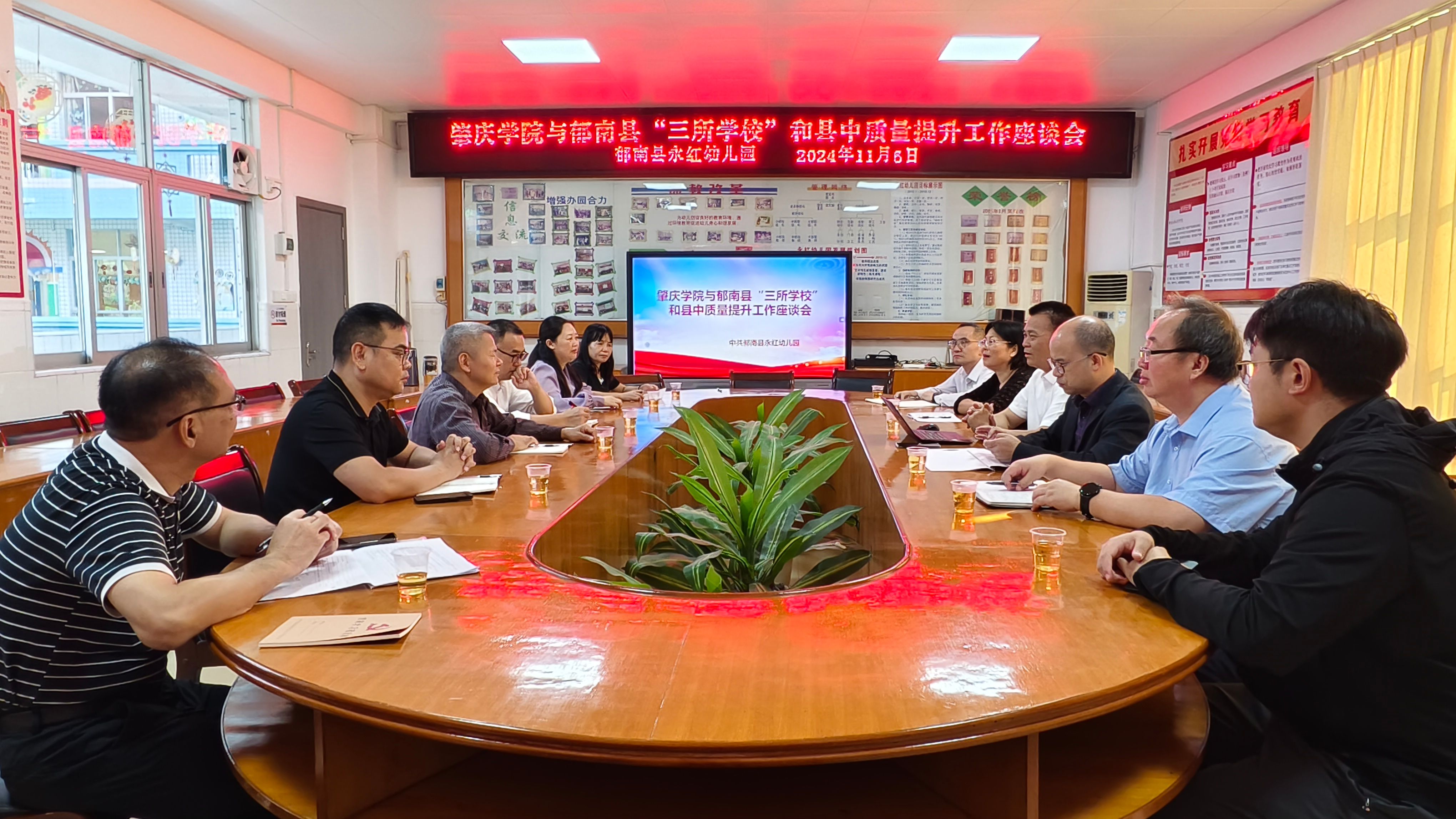 此次活动受到郁南教育局的高度重视。郁南县副县长杨桂平,教育局副局长谢行芝,郁南县教师发展中心、学校(幼儿园)主要负责人分别参加考察和研讨。谢行芝副局长详细介绍了近年来郁南教育工作情况和存在问题,希望持续借力“双百行动”,搭建更多合作平台,推动郁南基础教育课程改革,助力郁南教育高质量发展。双方就相关助力工作进行了具体而详细的交流和探讨,首先计划分批次、分层次、有针对性地开展系列师资培训,涵盖骨干教师研修班、校长高端研修班等专题。