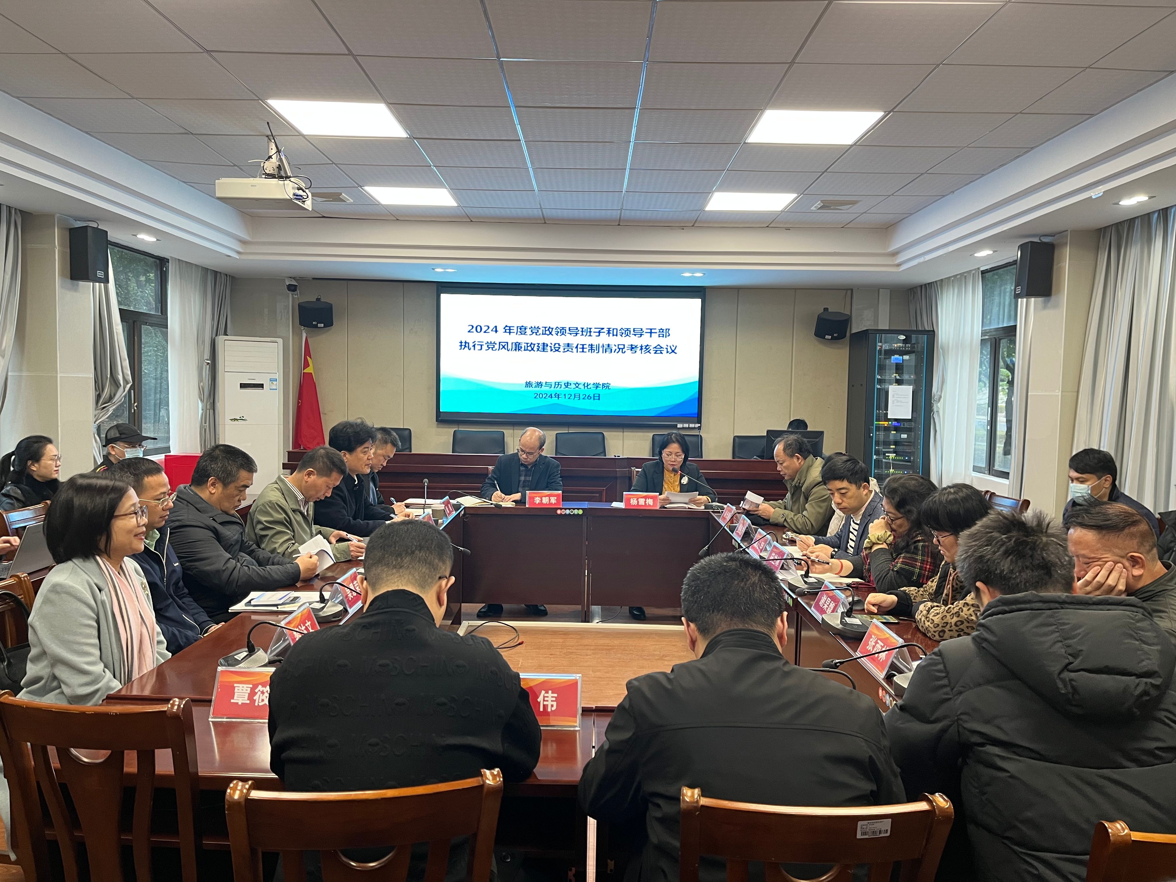 杨雪梅表示,一年来,旅游与历史文化学院党委坚持不懈用习近平新时代中国特色社会主义思想凝心铸魂,深入学习贯彻习近平总书记关于党的建设的重要思想、关于党的自我革命的重要思想,深刻领悟“两个确立”的决定性意义,增强“四个意识”、坚定“四个自信”、做到“两个维护”,紧紧围绕立德树人根本任务,纵深推进全面从严治党、党风廉政建设,认真开展党纪学习教育活动,着力构建风清气正的政治生态和干事创业的良好环境,以高质量党建引领保障学院高质量发展。一是提高政治站位,强化责任落实,为学院高质量发展提供坚强保障;二是坚持融入日常抓在经常,把党纪学习教育成果持续转化为推动高质量发展的强大动力;三是加强教育严格监督,营造风清气正育人环境;四是多措并举,推进廉洁文化建设走深走实。