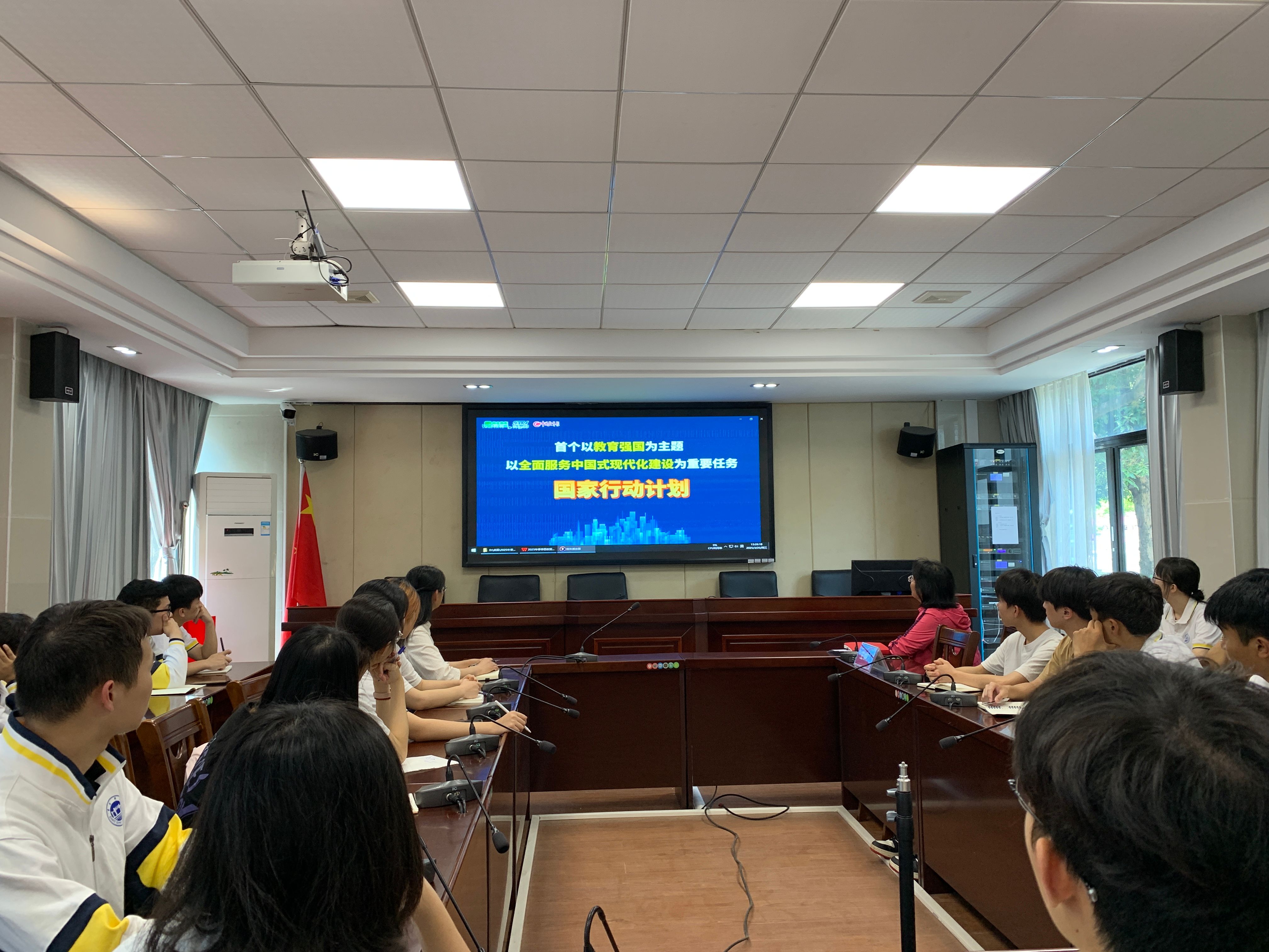 期间,大家还观看了视频《教育强国建设规划纲要(2024-2035)》和《数说新中国75年》。