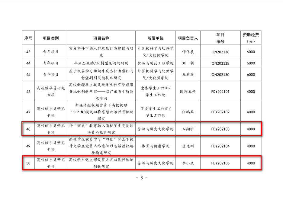 2、车翔宇:《将“四史”教育融入高校学生党员的培养与教育研究》(高校辅导员研究专项)
