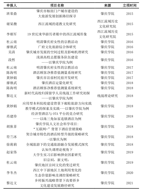 教而不研则浅,研而不教则空。科研是促进教师专业化发展的有效途径,也是学校持久发展的不竭动力。旅游与历史文化学院在近年来的教育教学工作中,充分发挥了教育科研在工作中的地位与功能,运用教育科研促进了教师的专业发展,以教师的专业发展有效促进了学生素质的发展。以下是TapTap点点官方网站在2015年1月至2021年9月期间科研立项情况。
