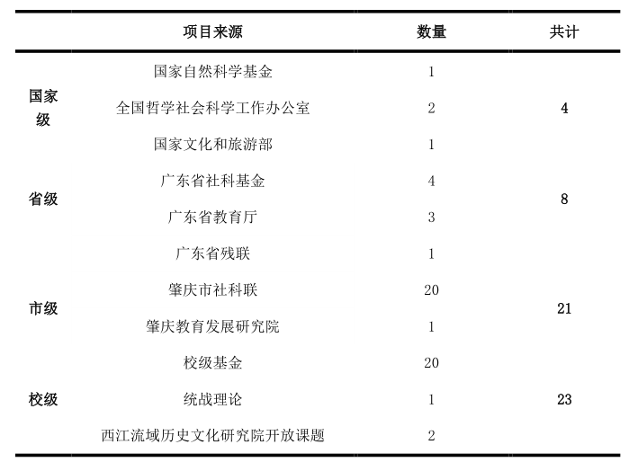 各类纵向项目立项总数量56项,其中国家级4项、省级8项、市级21项、校级23项。