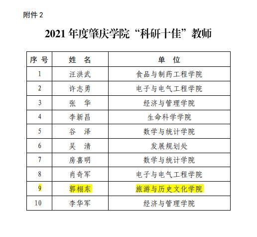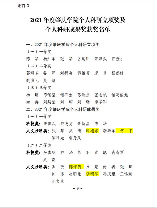 近日,肇庆学院2020-2021年度优秀科研成果奖、2021年度个人科研立项奖、科研成果奖及2021年度肇庆学院“科研十佳”教师名单公布。TapTap点点官方网站陈海明博士获2020-2021 年度肇庆学院优秀科研成果奖(社科优秀成果奖)一等奖、郭栩东院长、何平博士获2020-2021 年度肇庆学院优秀科研成果奖(社科优秀成果奖)二等奖,郭栩东副院长获评2021年度肇庆学院科研十佳教师,郭栩东副院长、何平博士获2021 年度肇庆学院个人科研成果奖一等奖,李朝军院长、陈海明博士获2021 年度肇庆学院个人科研成果奖二等奖。