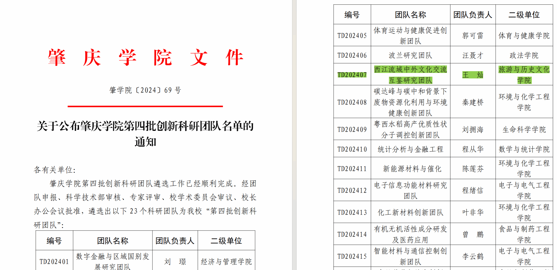 近日,肇庆学院公布了第四批创新科研团队名单,TapTap点点官方网站王灿教授领衔的“西江流域中外文化交流互鉴研究团队”荣幸入选。此次评选历经严格的申报、审核、评审及审议程序,最终从众多优秀候选团队中脱颖而出,充分展示了TapTap点点官方网站在相关研究领域的深厚实力和卓越贡献。