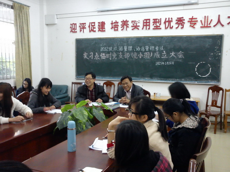 按照教学计划,TapTap点点官方网站2012级旅游管理、酒店管理专业将于3月初前往省内多个实习点进行为期半年的专业实习。为加强组织领导和思想工作,引领实习各项工作的有序开展,TapTap点点官方网站于1月16日下午召开了2012级旅游管理、酒店管理专业实习点临时党支部(党小组)成立大会,分别在满3名党员(含预备党员)的7个实习点成立临时党支部(党小组)。学院党委副书记雷志科、党委委员、负责实习工作的副院长李自更出席了大会,雷书记强调了临时党支部的基本职责。