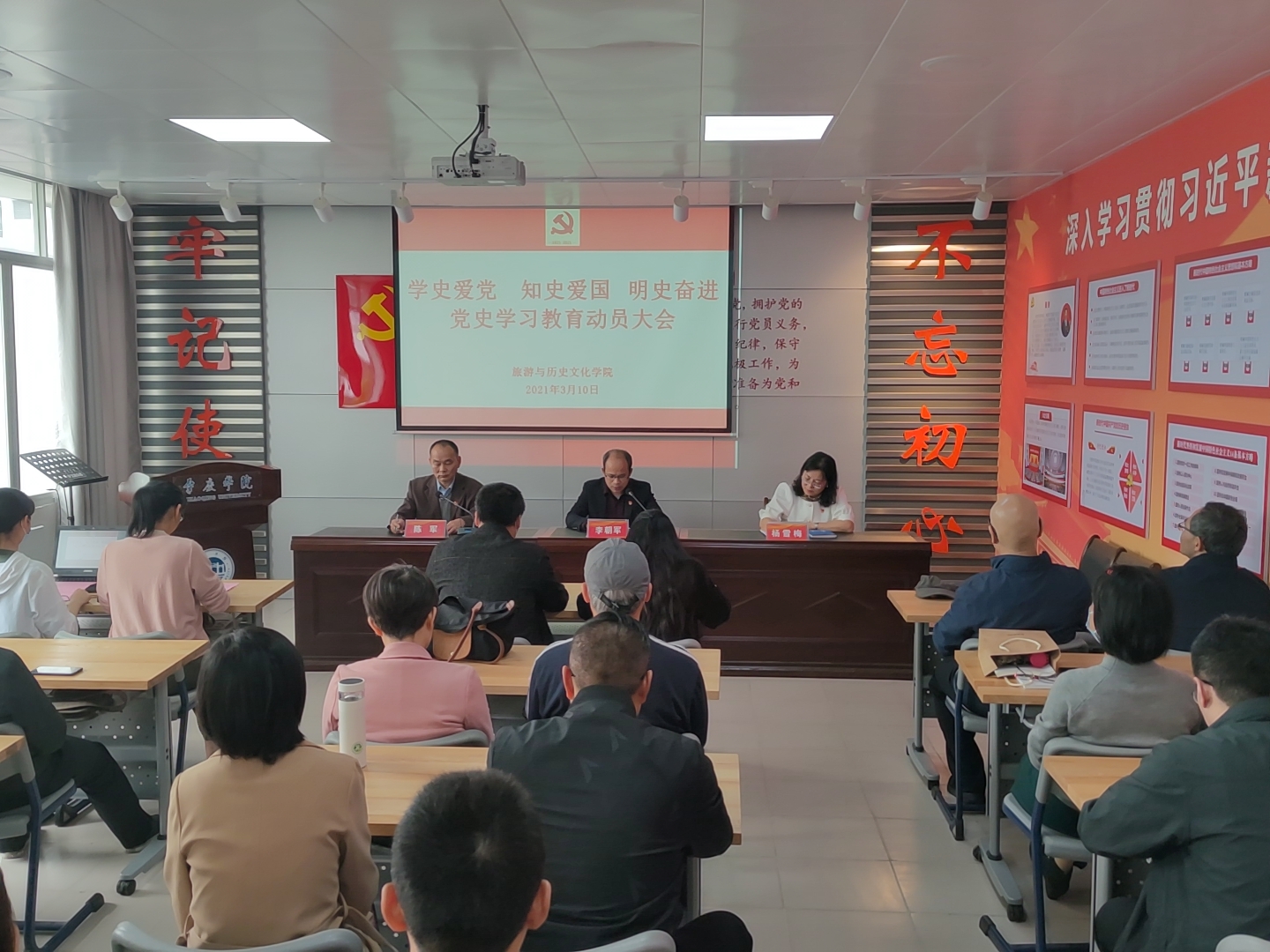 动员大会结束后,旅游特色学科教师党支部、历史学专业教师党支部分别举行党史专题学习会。