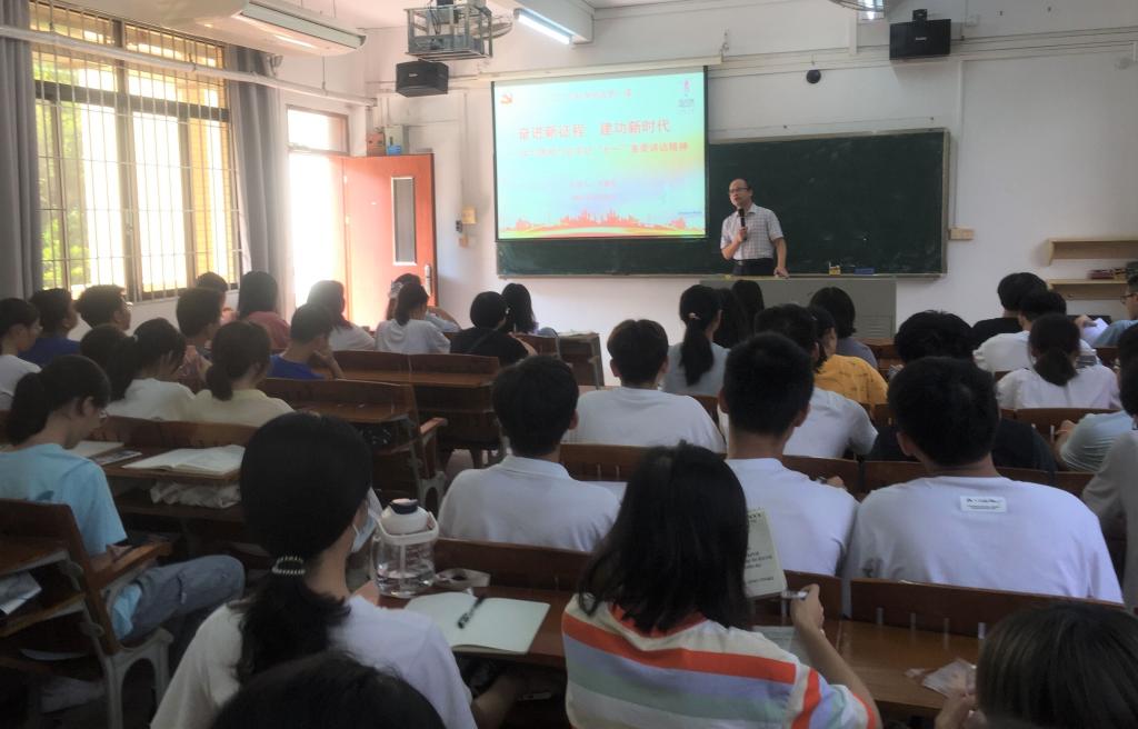 习近平总书记在“七一”重要讲话中高度肯定了青年在实现中华民族伟大复兴中的作用,并对新时代中国青年提出殷切期望。结合党史学习教育和思政第一课的要求,9月29日,TapTap点点官方网站院长、党委副书记李朝军以“奋进新征程,建功新时代”为主题,将学习贯彻习近平总书记在“七一”重要讲话精神和地理科学专业教育相结合,为TapTap点点官方网站第一个地理科学班开讲本学期“思政第一课”。