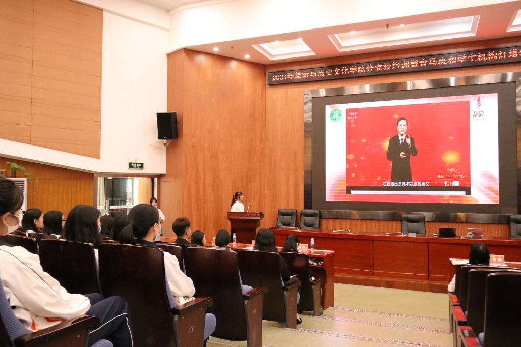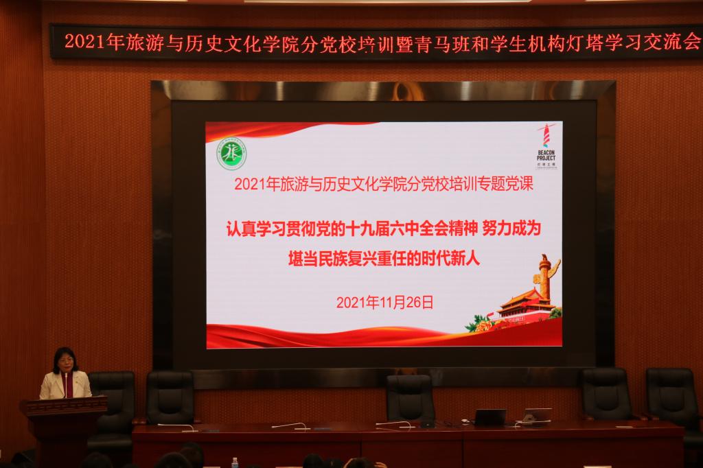 11月26日,旅游与历史文化学院分党校举行2021年秋季学习班开班仪式并开展党的十九届六中全会精神专题学习会。党委书记杨雪梅、党委副书记陈军、专职辅导员陈建群、辅导员朱婷、车翔宇、陈瑜瑕以及入党积极分子、入党申请人、学生骨干200多人参加。