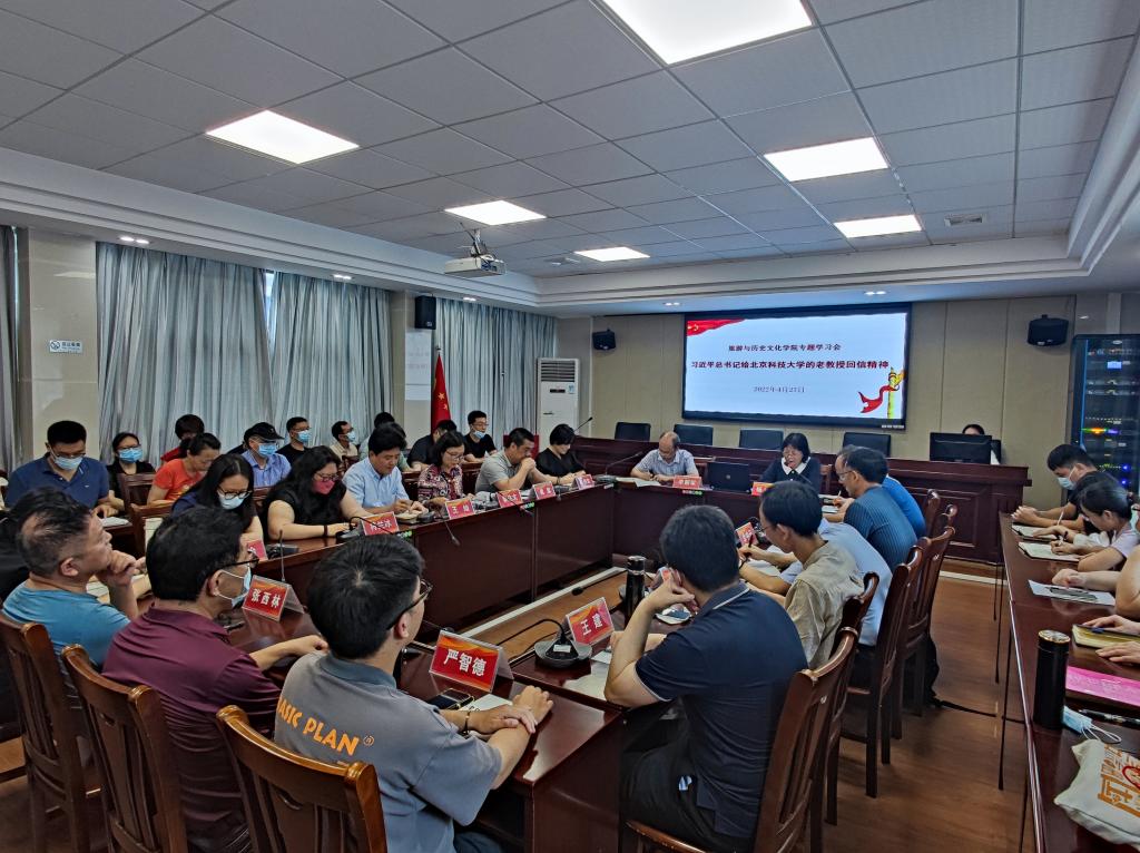 4月27日,旅游学院党委组织全体教职工开展政治理论学习,专题学习习近平总书记给北京科技大学的老教授回信精神党委书记杨雪梅主持学习会,李朝军院长、郭栩东副院长、周军副院长、陈军副书记以及党支部书记、系部主任,全体教职员工参加。