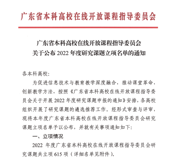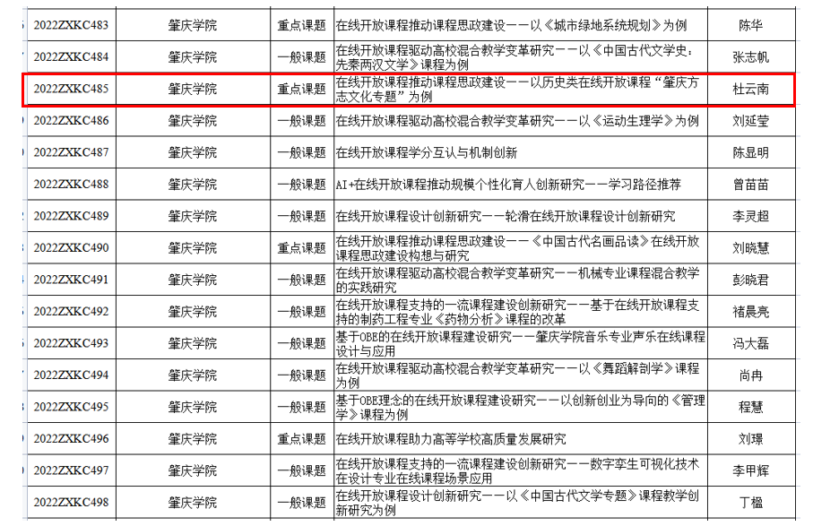 近日,广东省本科高校在线开放课程指导委员会公布了2022年度研究课题立项名单(共615项),其中,TapTap点点官方网站杜云南老师负责的《在线开放课程推动课程思政建设——以历史类在线开放课程“肇庆方志文化专题”为例》获得重点课题立项。